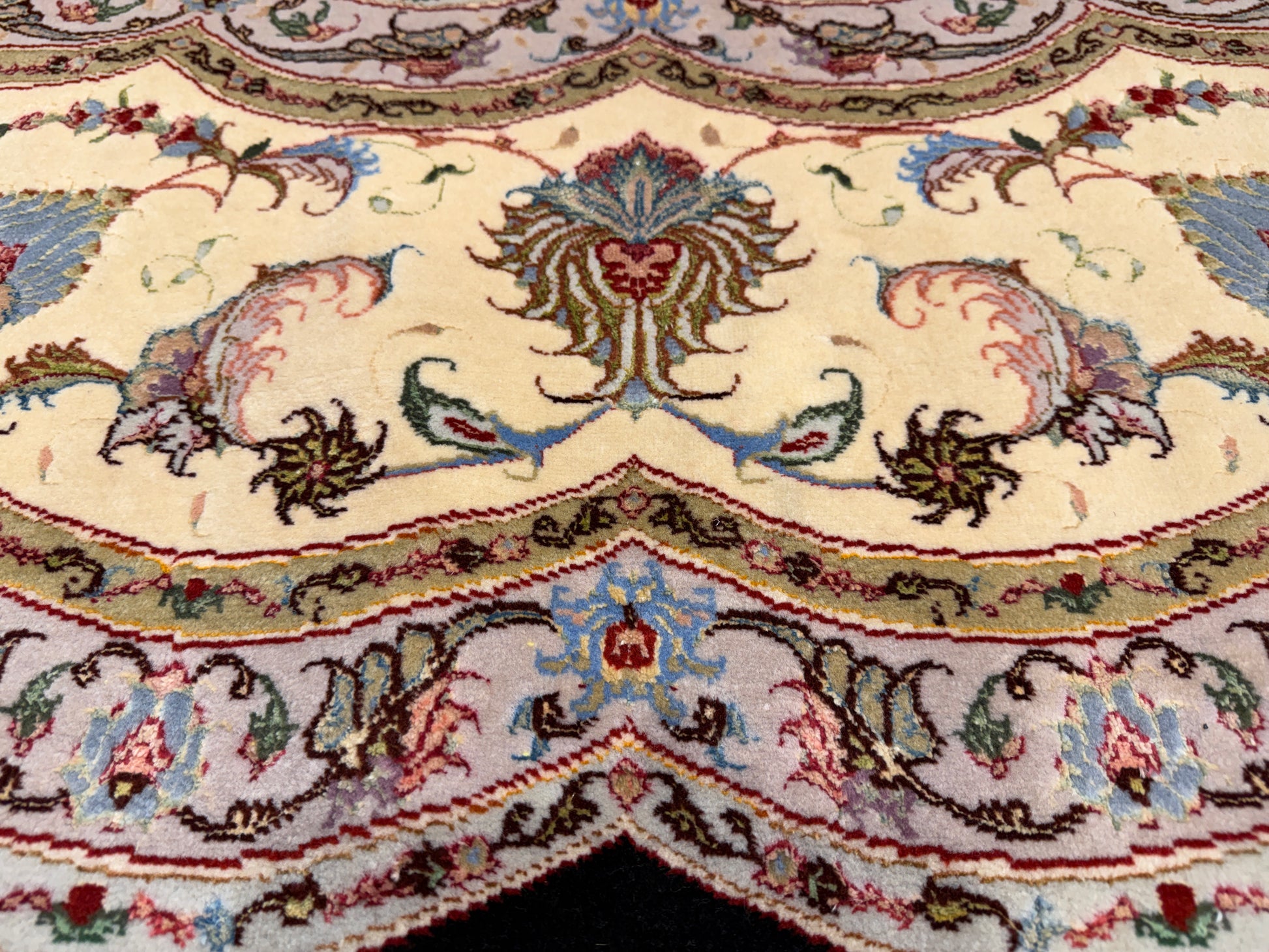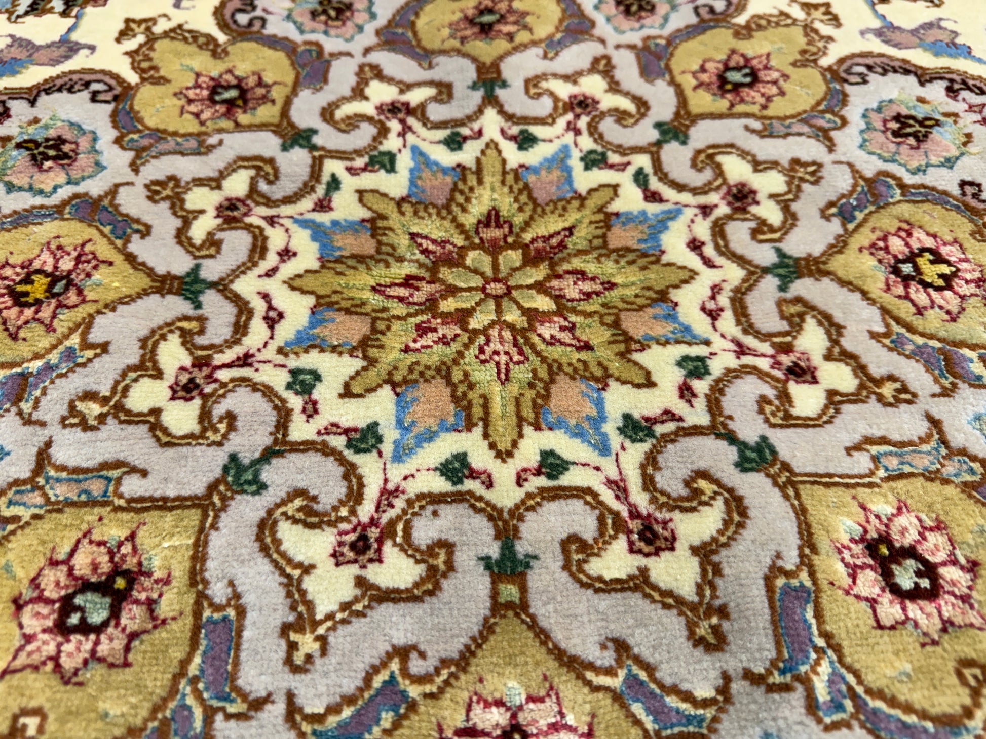 Ideal as the focal point of a grand living room, dining space, or formal entryway, this round Tabriz rug embodies both durability and sophistication. Its combination of fine materials, exceptional knot density, and timeless design ensures it will remain a treasured heirloom for generations. Beyond its function as a floor covering, this handmade carpet is a piece of art that elevates any interior with its elegance and historical charm.