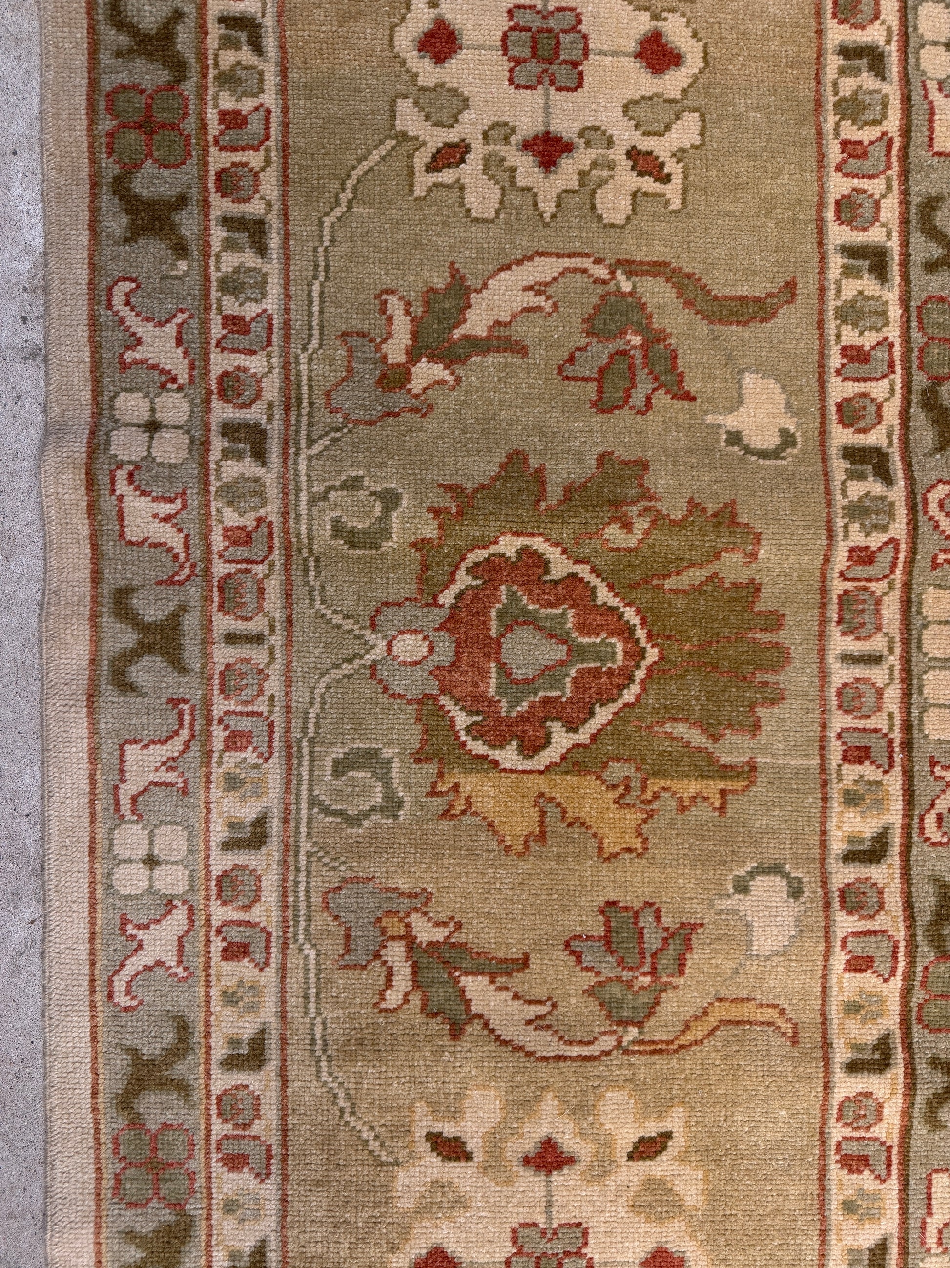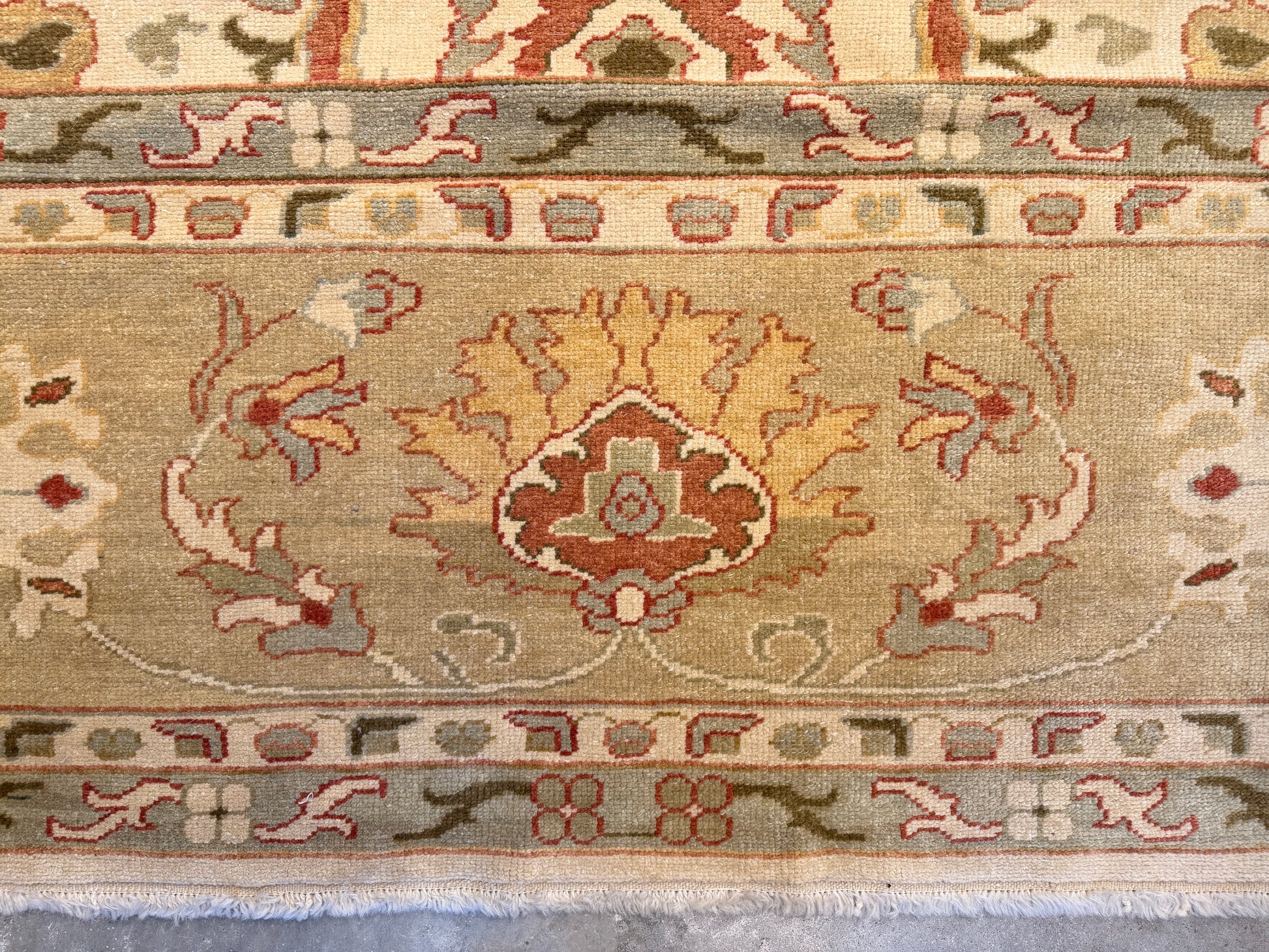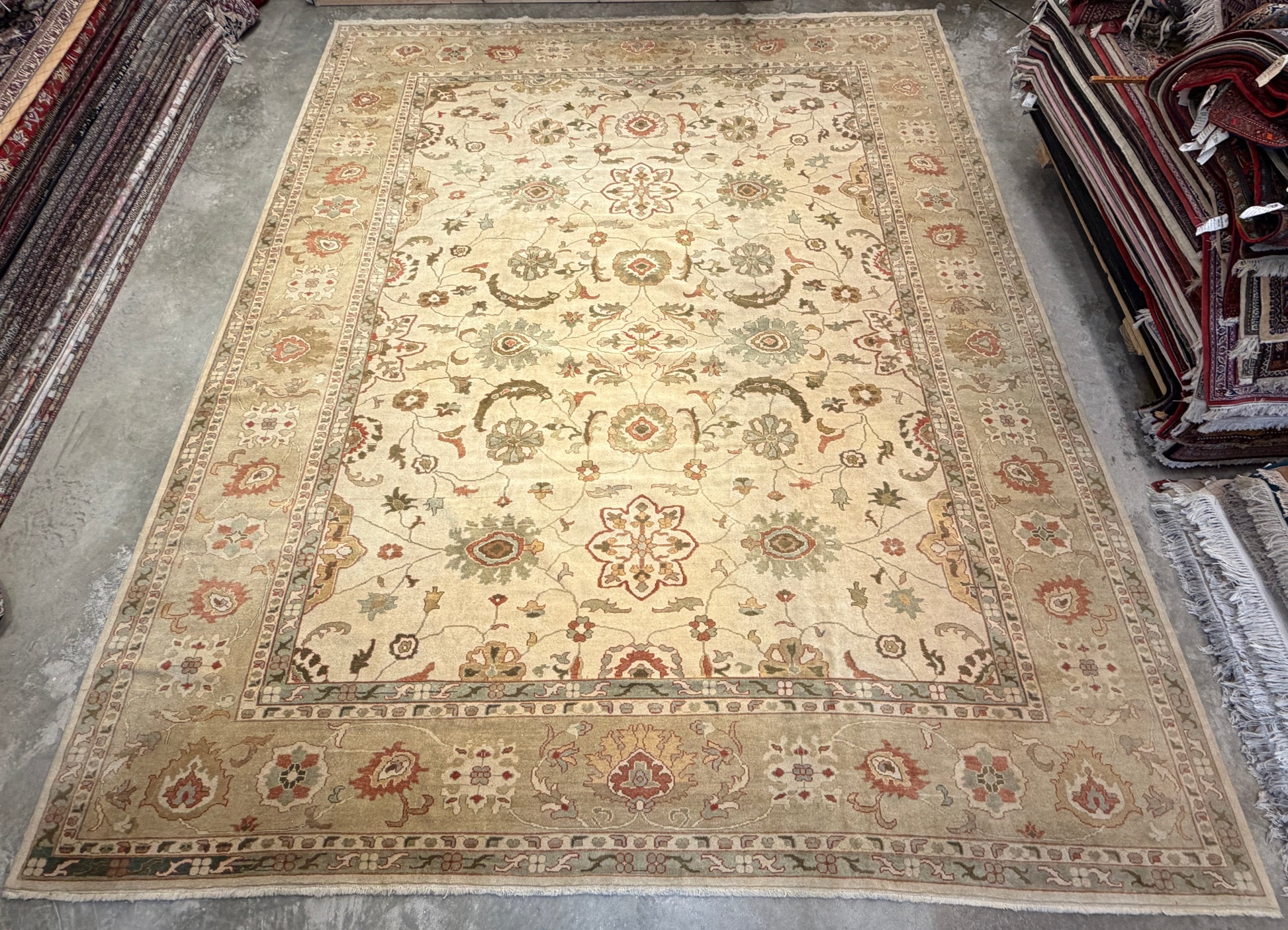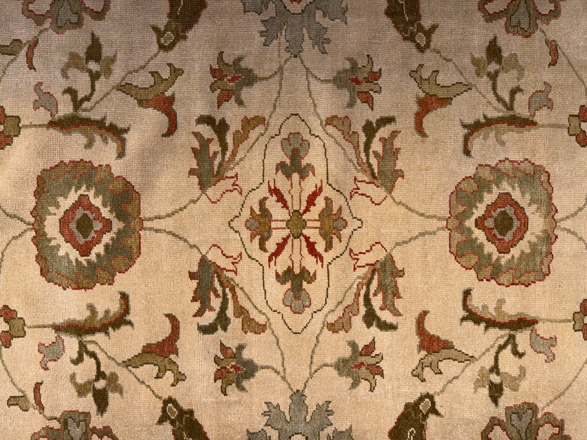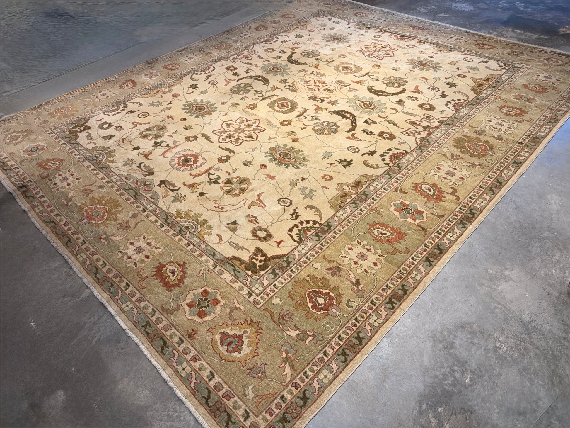 Handmade using time-honored techniques, this rug demonstrates the durability and artistry of authentic Oushak weaving. Each knot is tied by skilled artisans, resulting in a plush texture and a surface that reflects natural variations in the wool. Its generous dimensions make it ideal for anchoring a large living or dining space, while the timeless design adds warmth and understated sophistication to any setting.