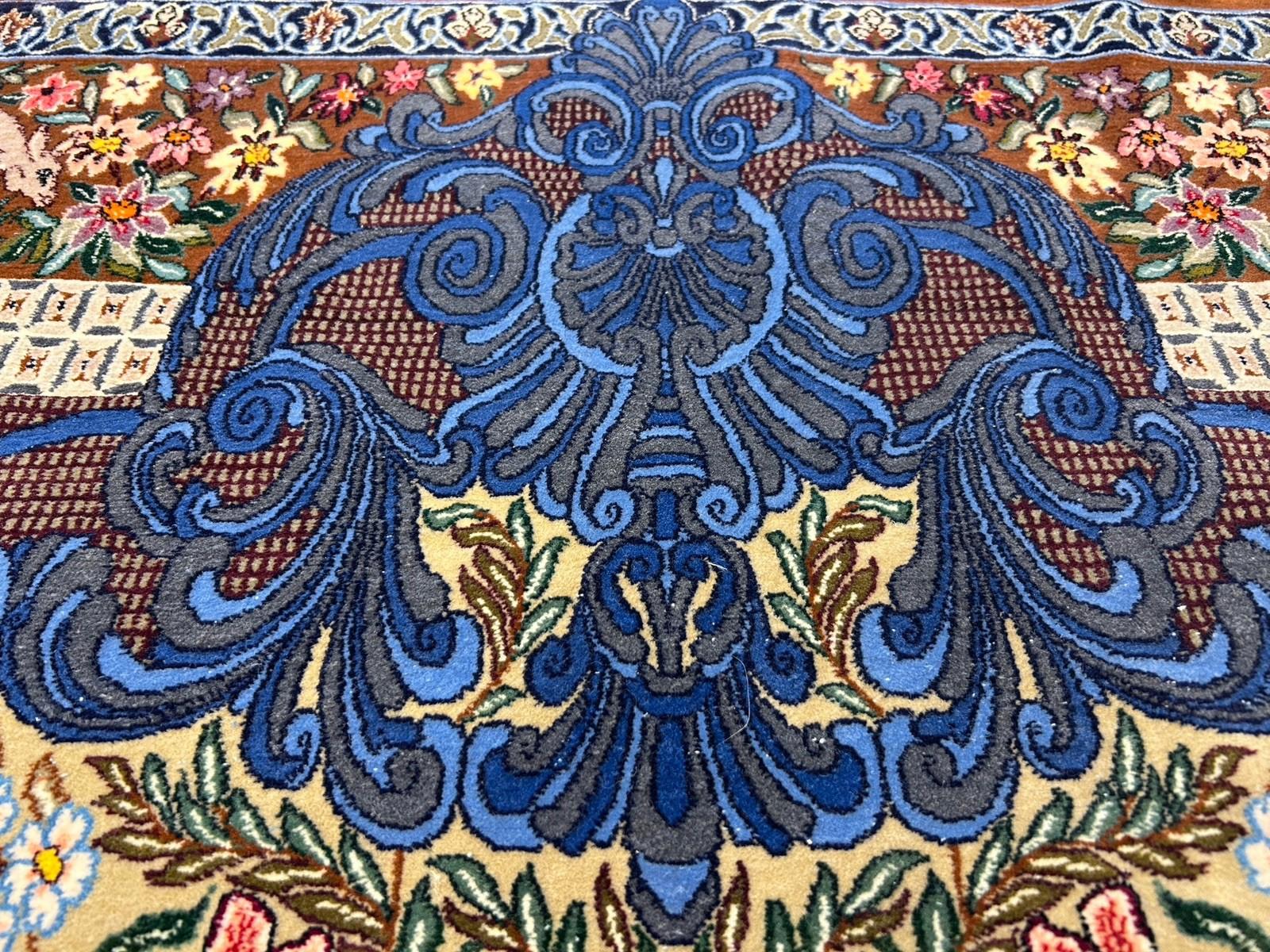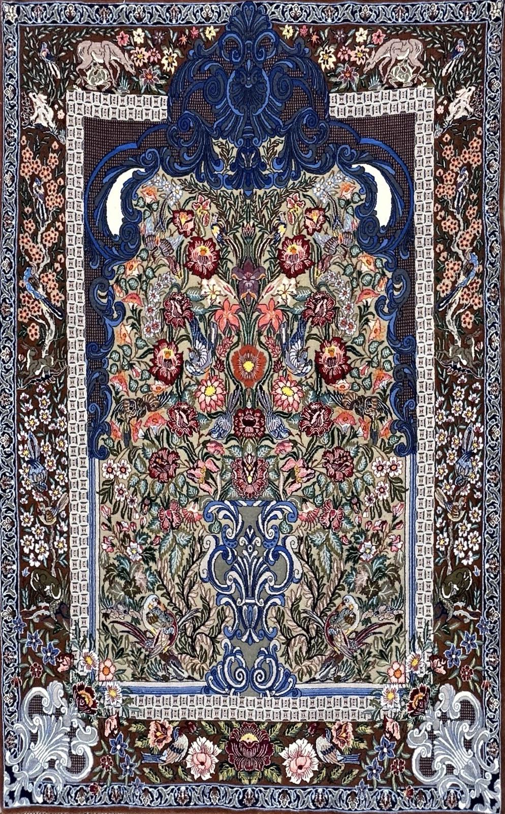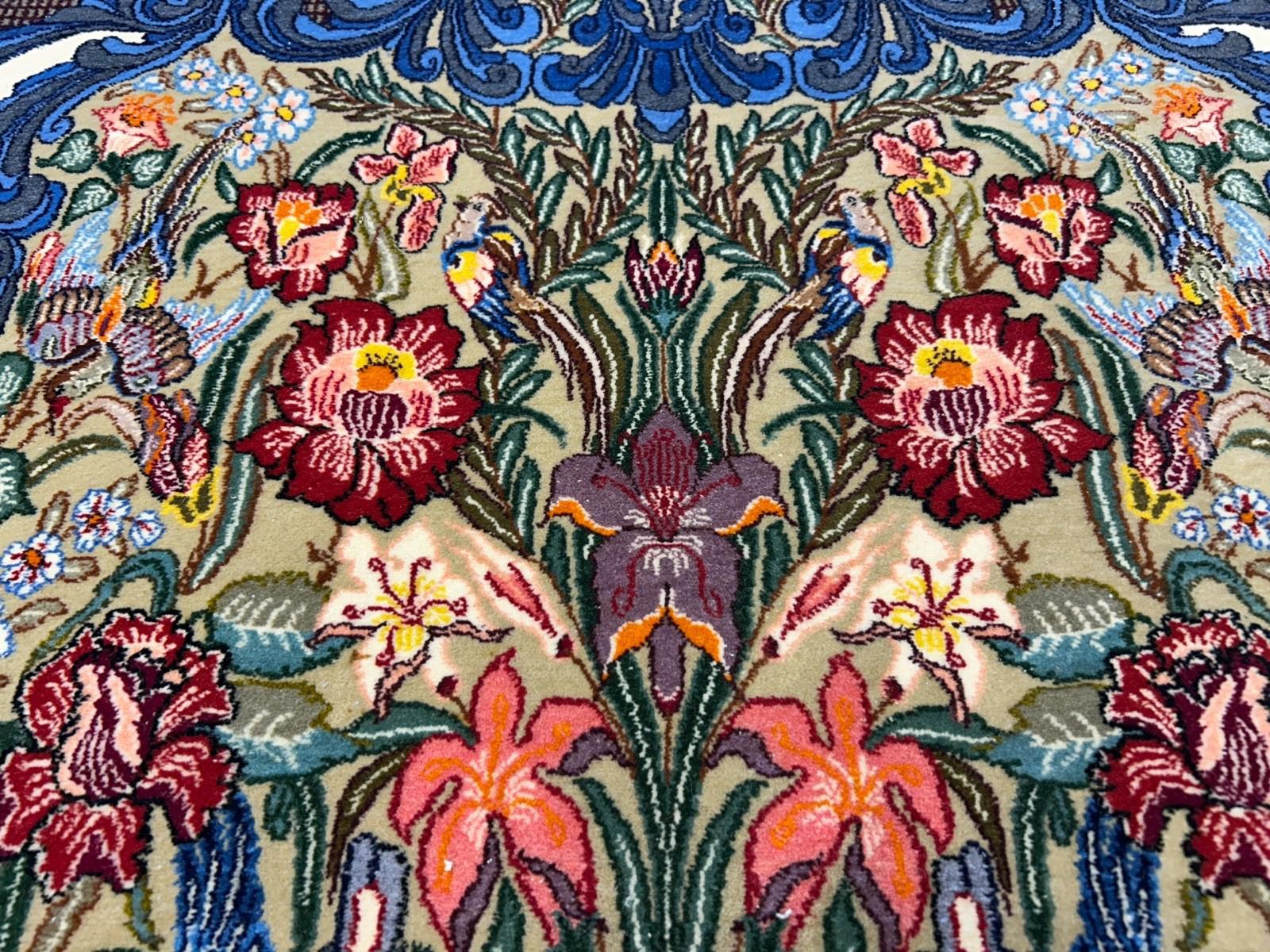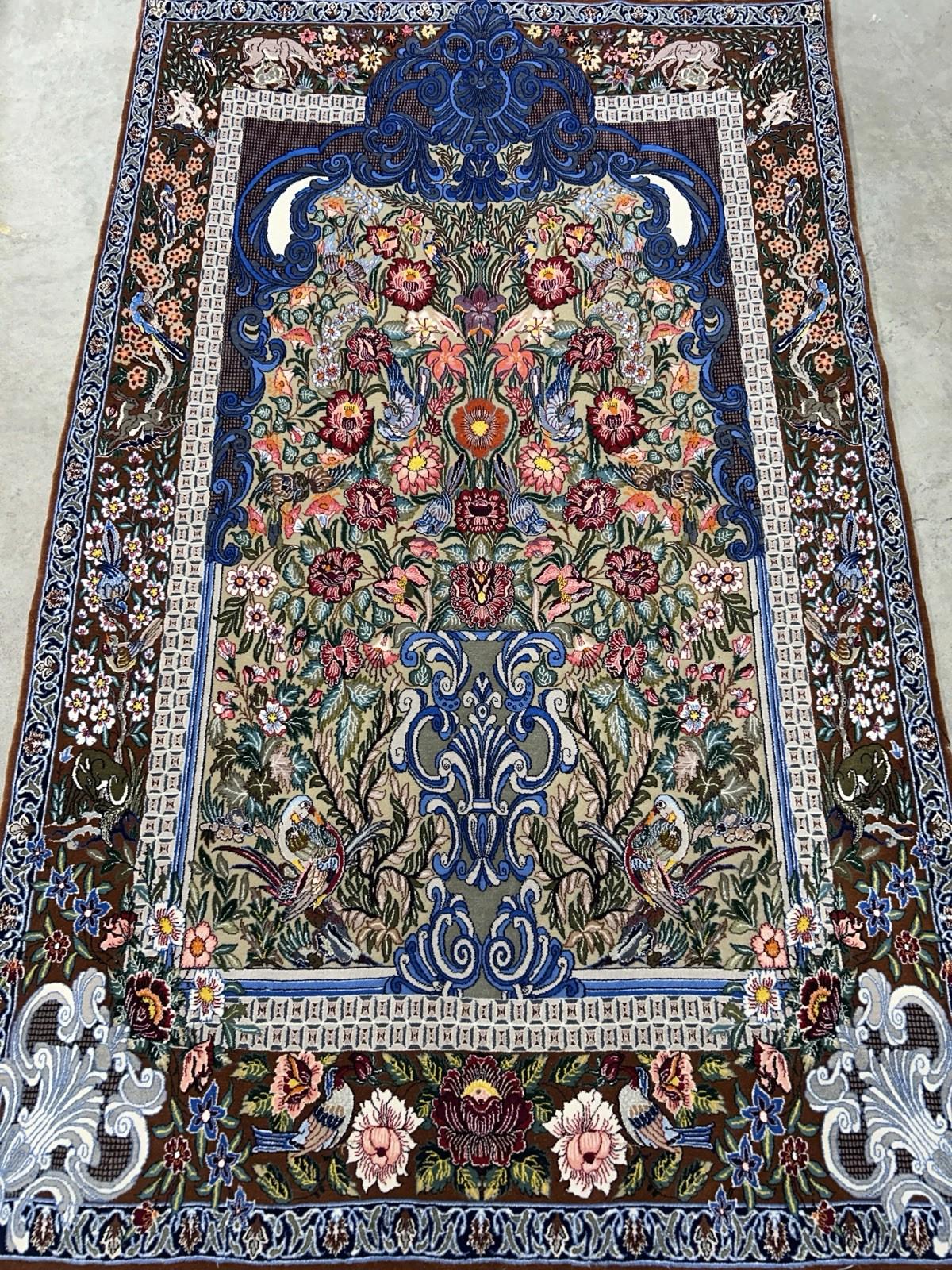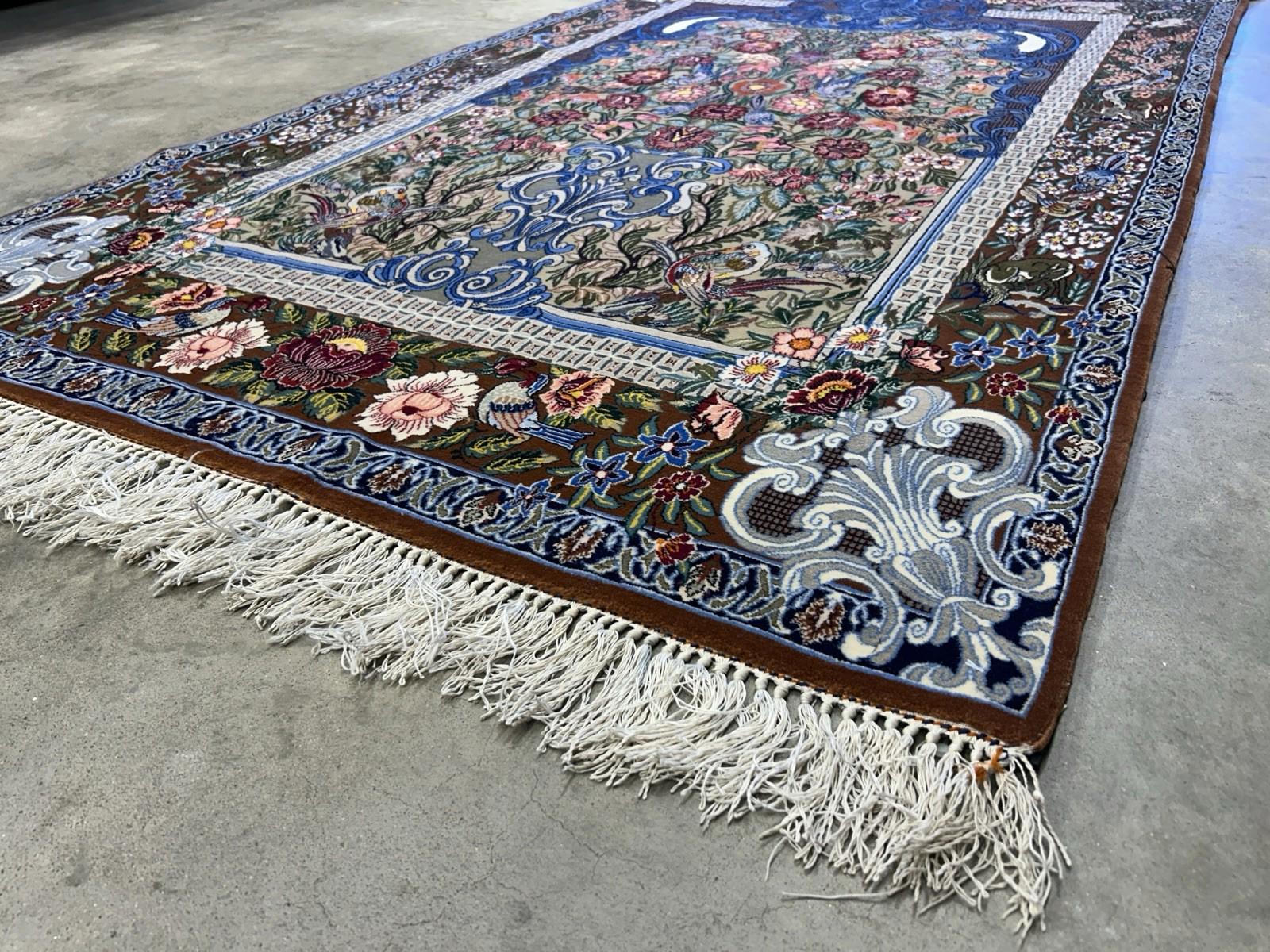 Elevate your space with this exquisite handmade Isfahane pictorial rug from Rug Factory. Crafted from a luxurious blend of fine wool and silk, this one-of-a-kind traditional piece showcases a stunning pictorial design featuring animals and floral motifsβa timeless statement of artistry and charm.