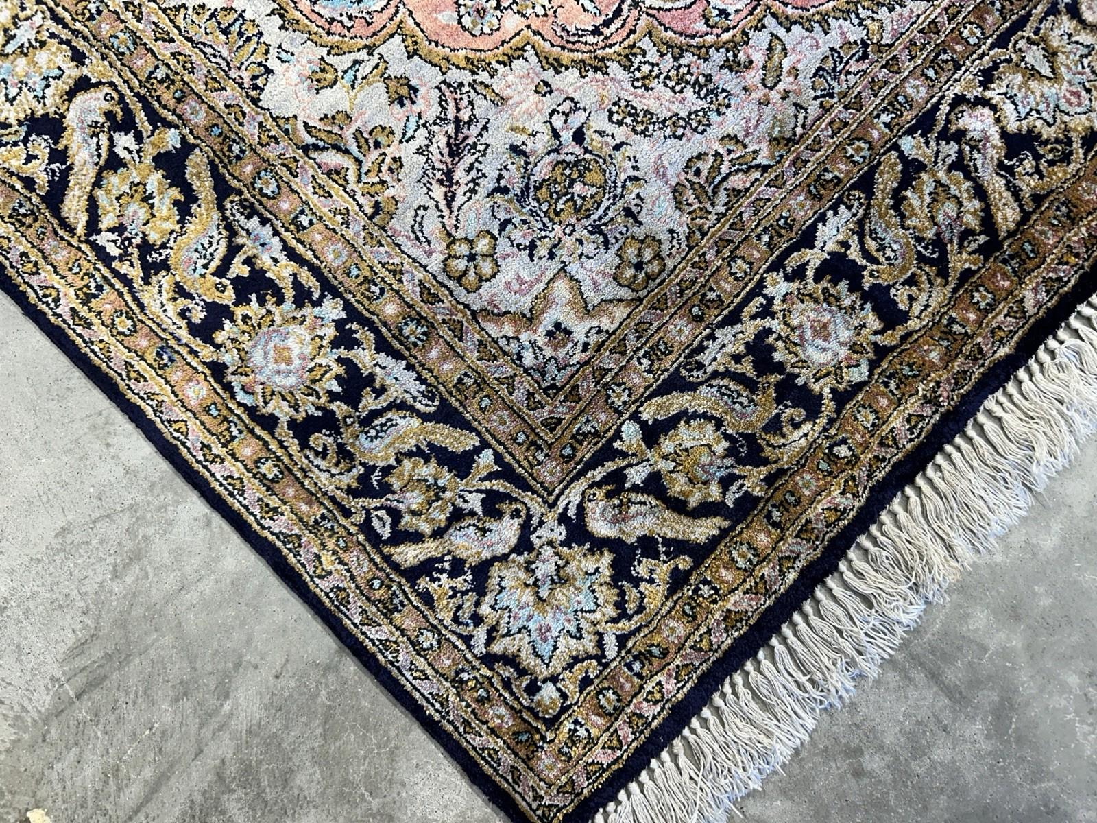 Add a touch of elegance and charm to your home with this hand-knotted Qume area rug, featuring a traditional regional design with a pictorial motif of animals and flowers. Crafted from 100% silk with a low pile height, this handmade piece offers both visual sophistication and practical comfort—perfect for bedrooms, living rooms, kitchens, and bathrooms.