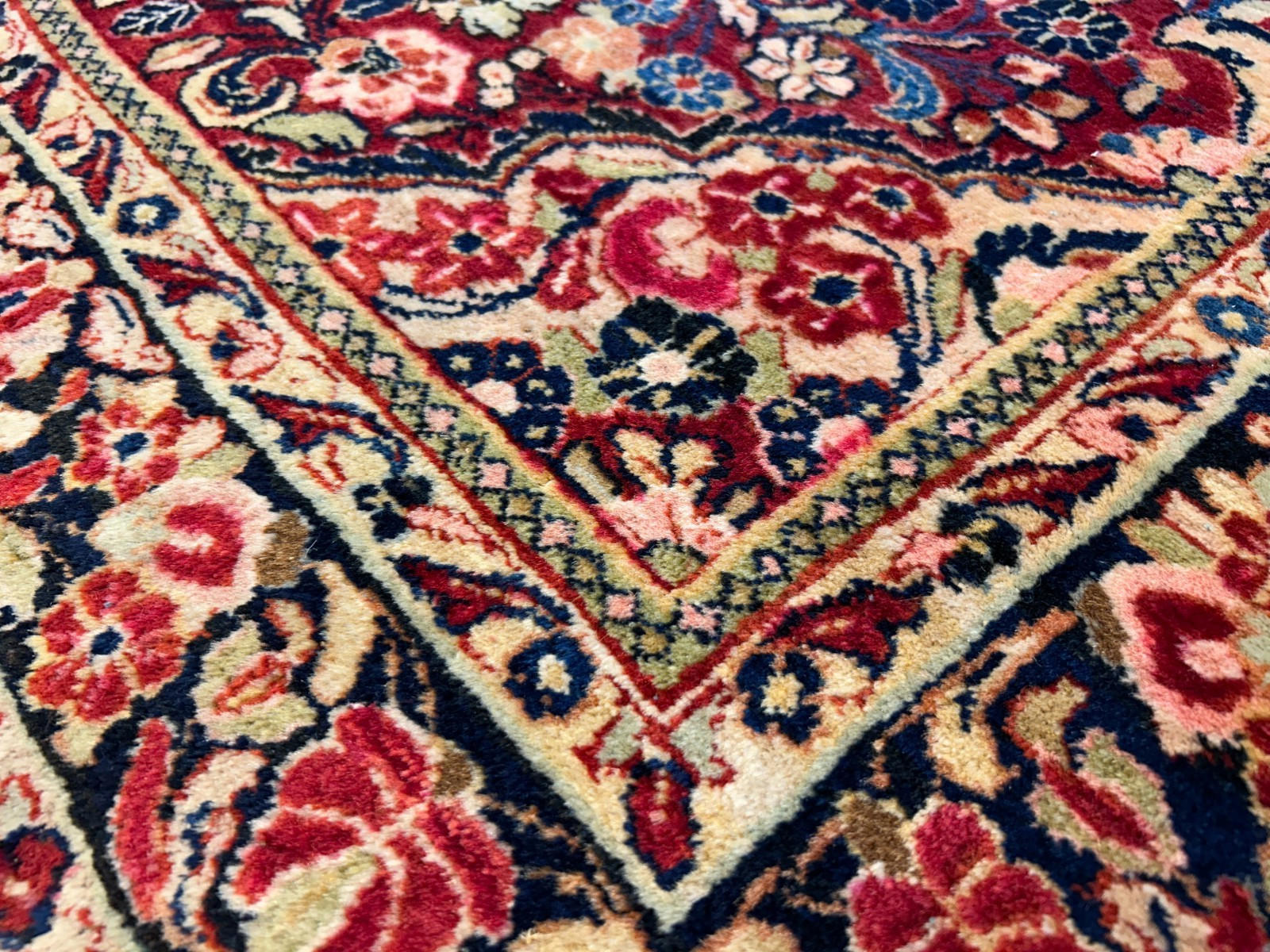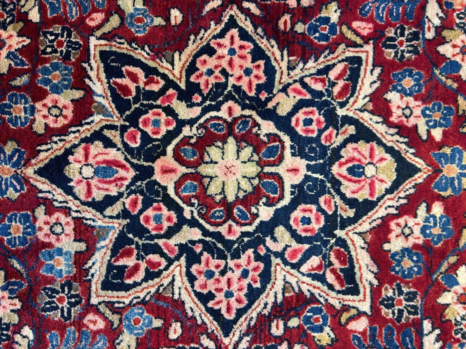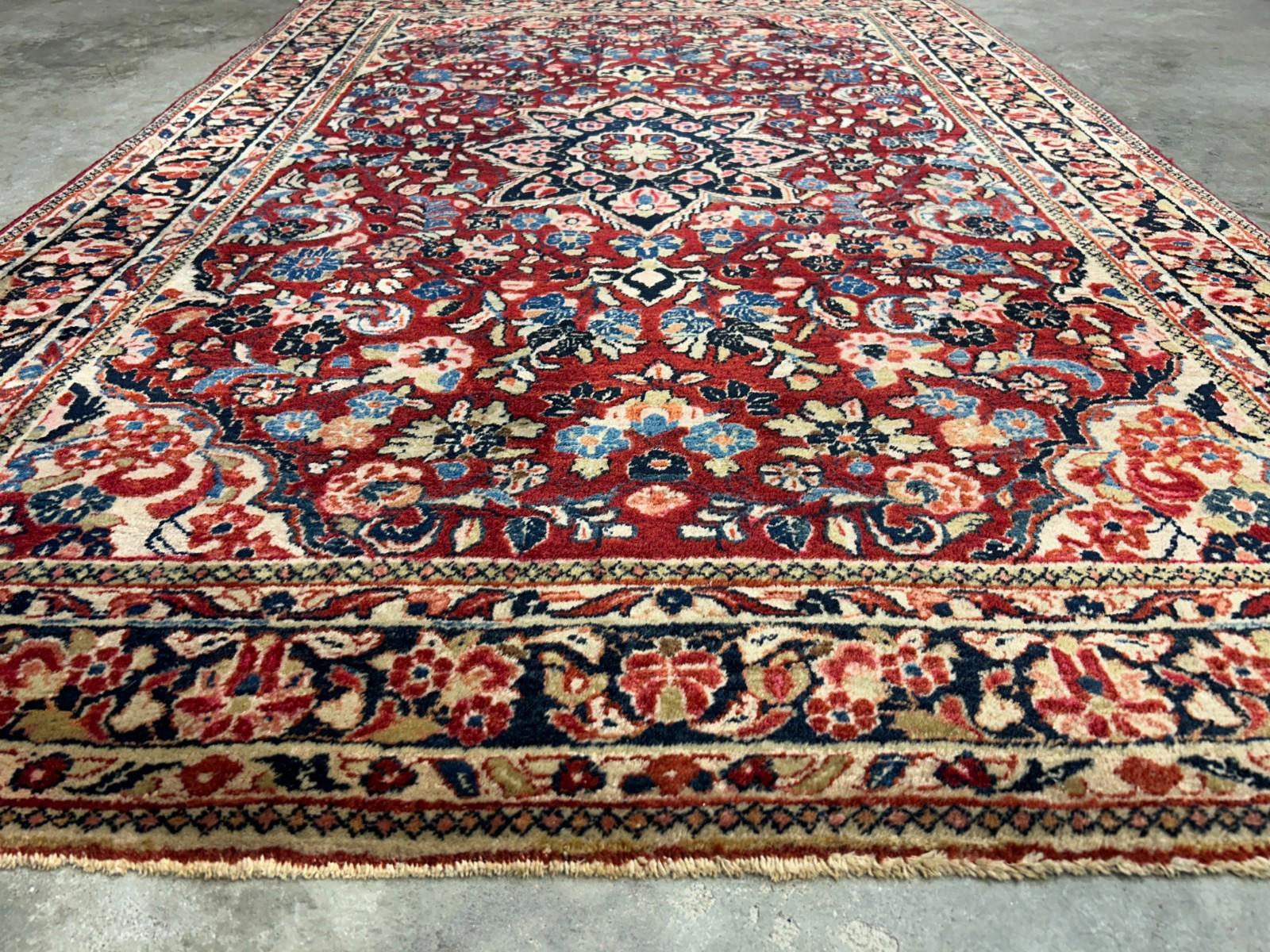 Style: Traditional Oriental | Floral medallion motif Size: 4'3" x 6'4" (approx.) Material: 100% wool | Medium pile height Weave: Hand-knotted for lasting durability Color: Red with navy, cream, pink & light blue accents 🌿 Functional Benefits:
