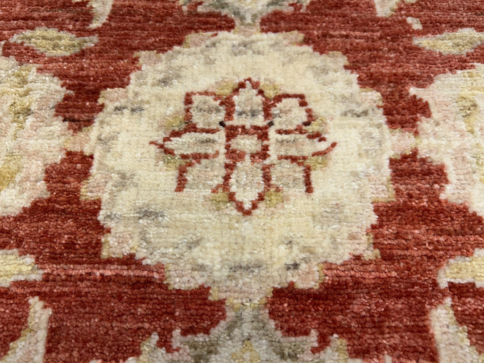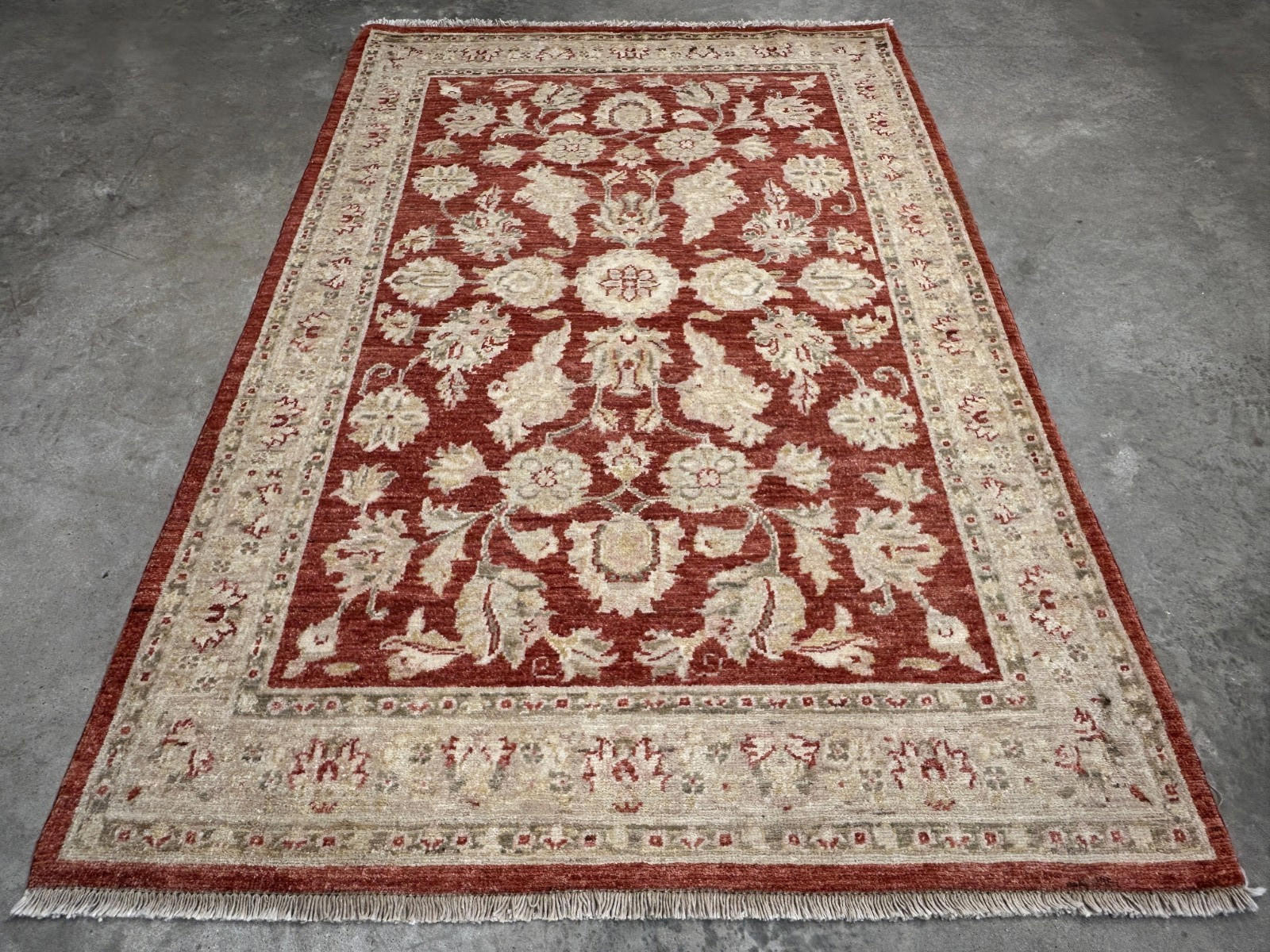 Style: Traditional | All-over pattern Size: 4' x 5'9" (approx.) Material: 100% wool | Medium pile height Weave: Hand-knotted | 200–300 KPSI Color: Red with subtle pattern detailing 🌿 Functional Benefits: