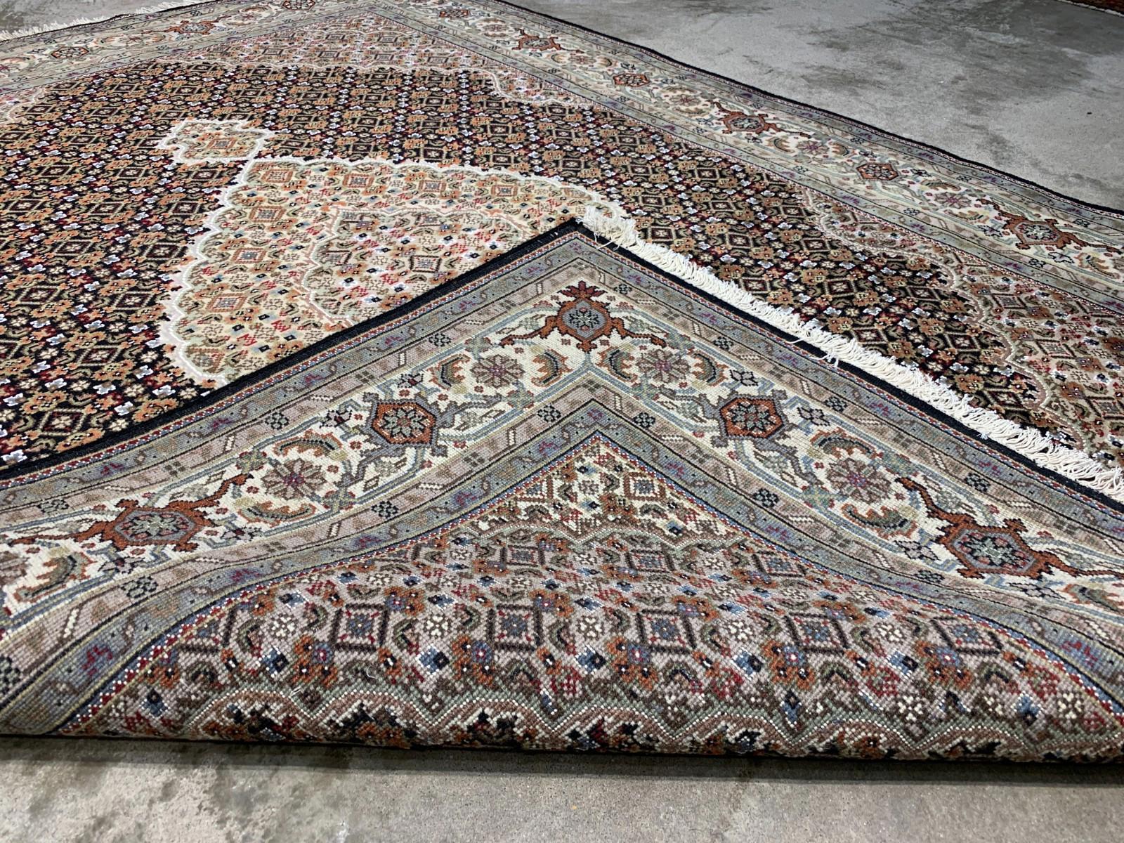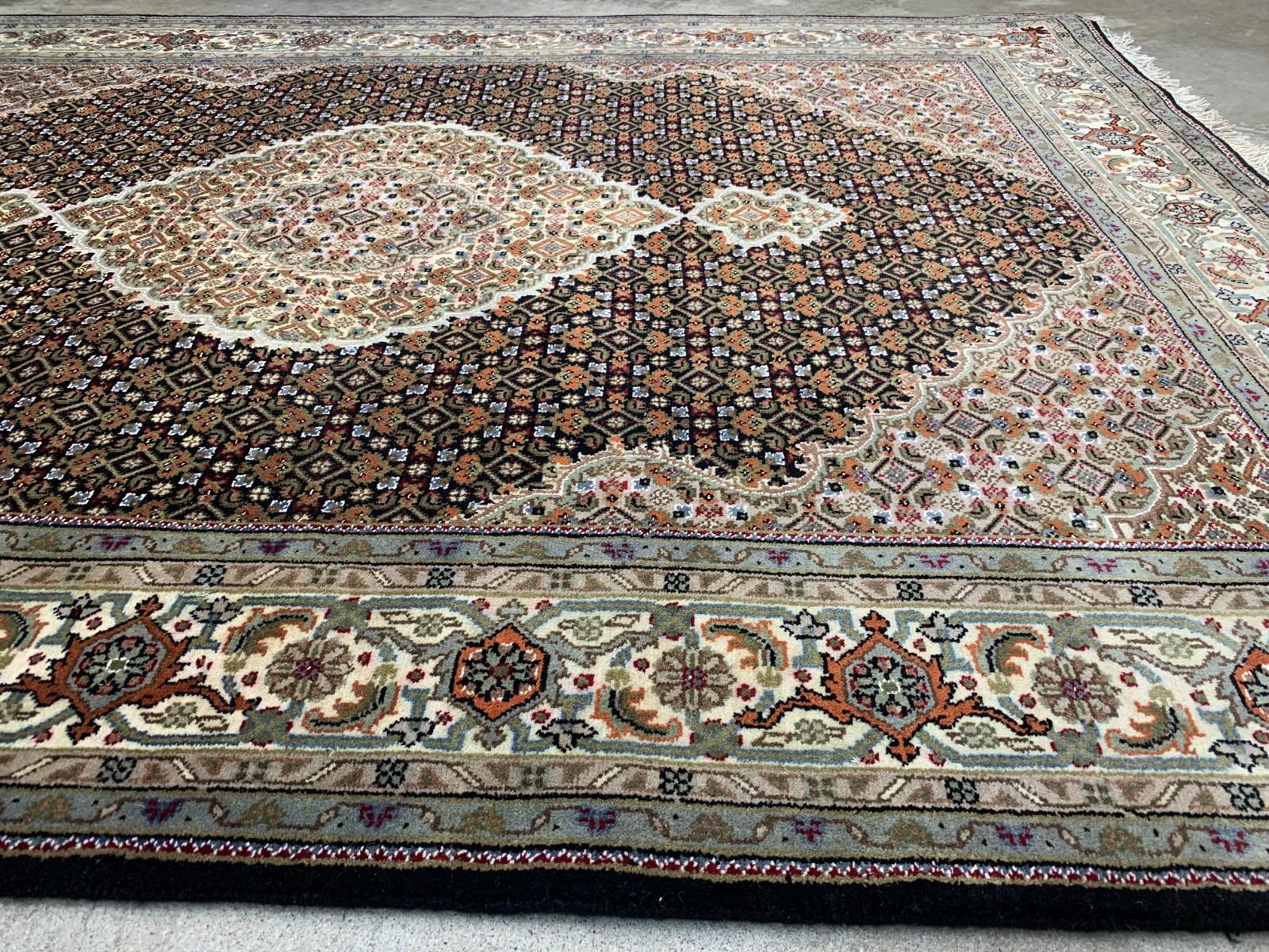 Style: Traditional Tabrize | Medallion motif Size: 5'7" x 7'7" Material: Silk & wool blend | Medium pile height Weave: Hand-knotted for lasting durability Color: Black with antique-inspired detailing 🌿 Functional Benefits: