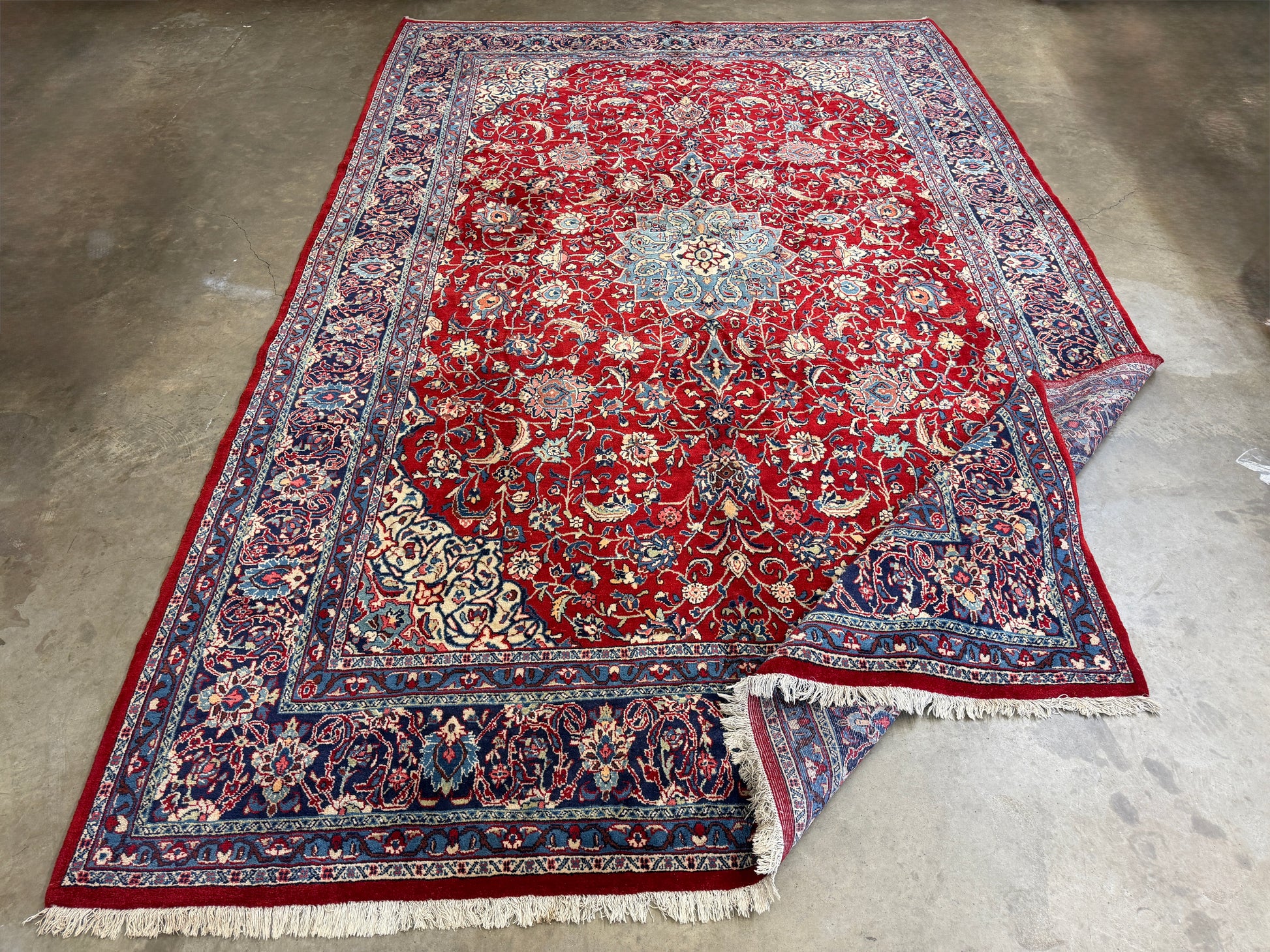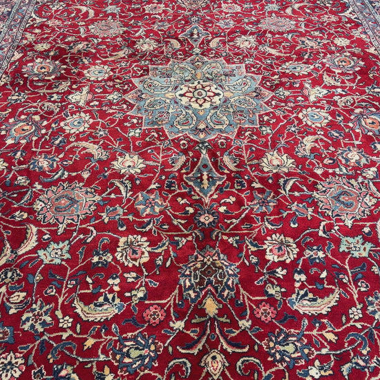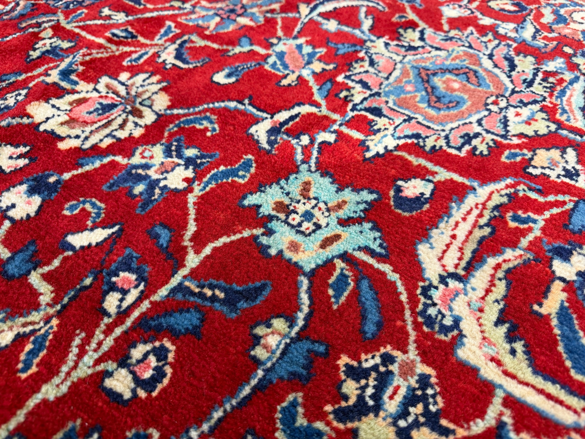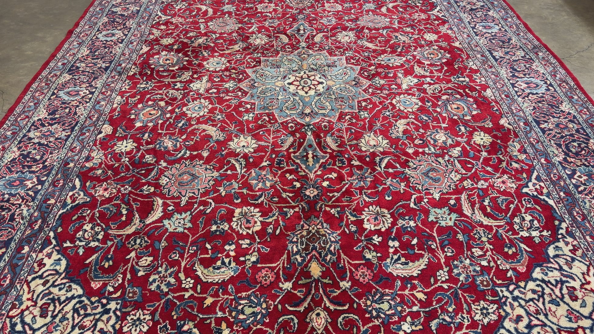 Introducing a masterpiece of luxury and artisanal craftsmanship - the 8'4"x12'8" Hand-Knotted Wool Sarouk Persian Rug. Handmade with the finest wool, this elegant red carpet is a statement of opulence and taste. Transform your space into a work of art with this exquisite piece.