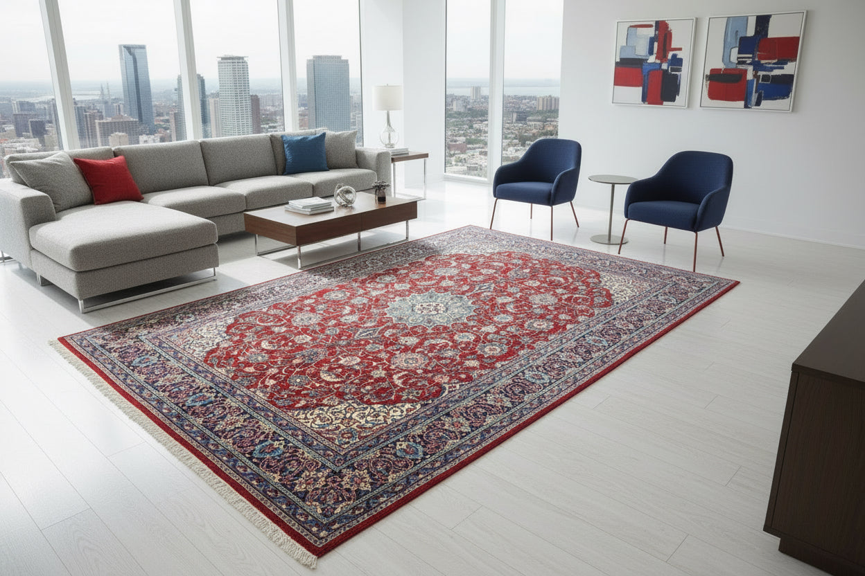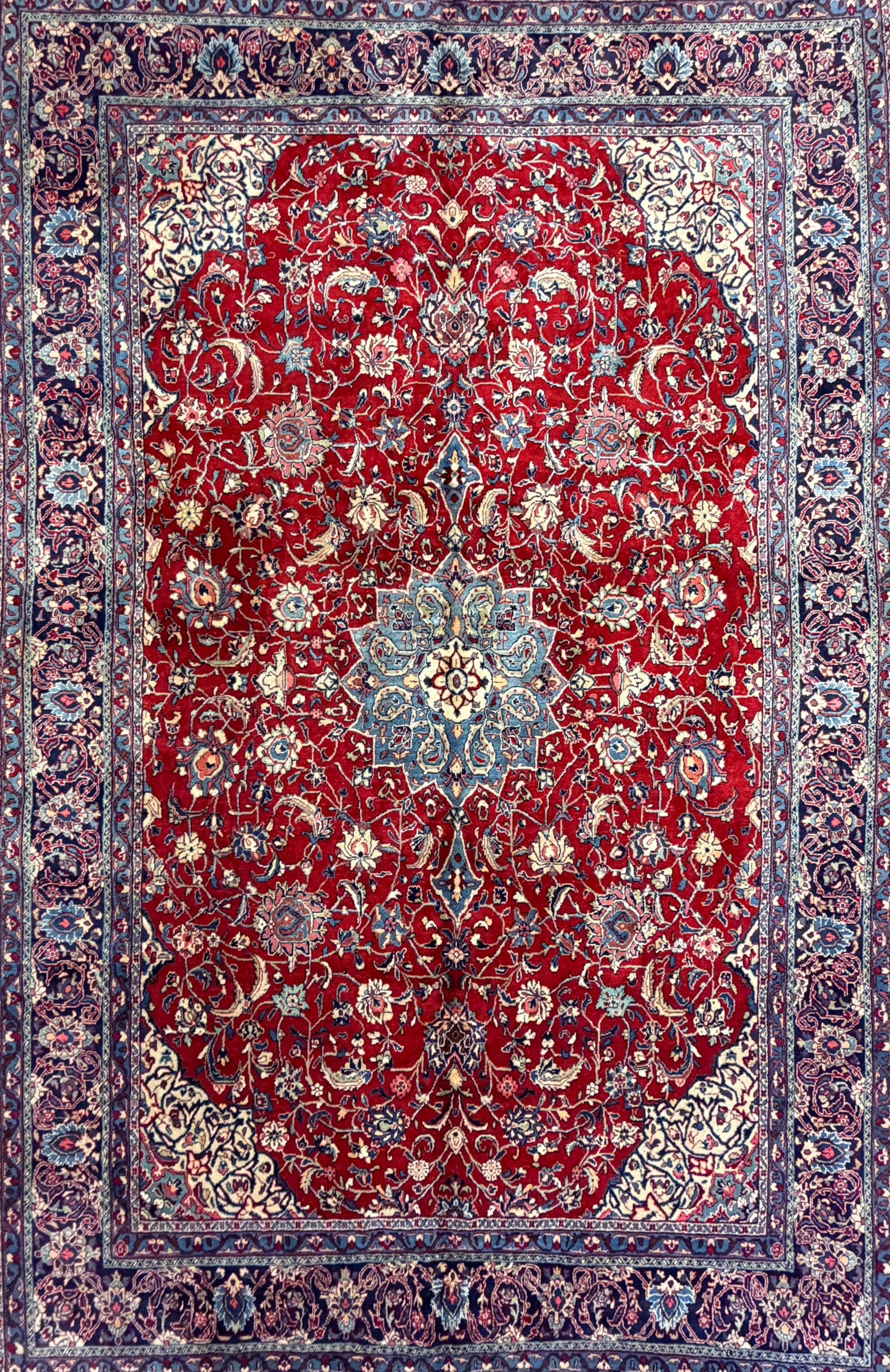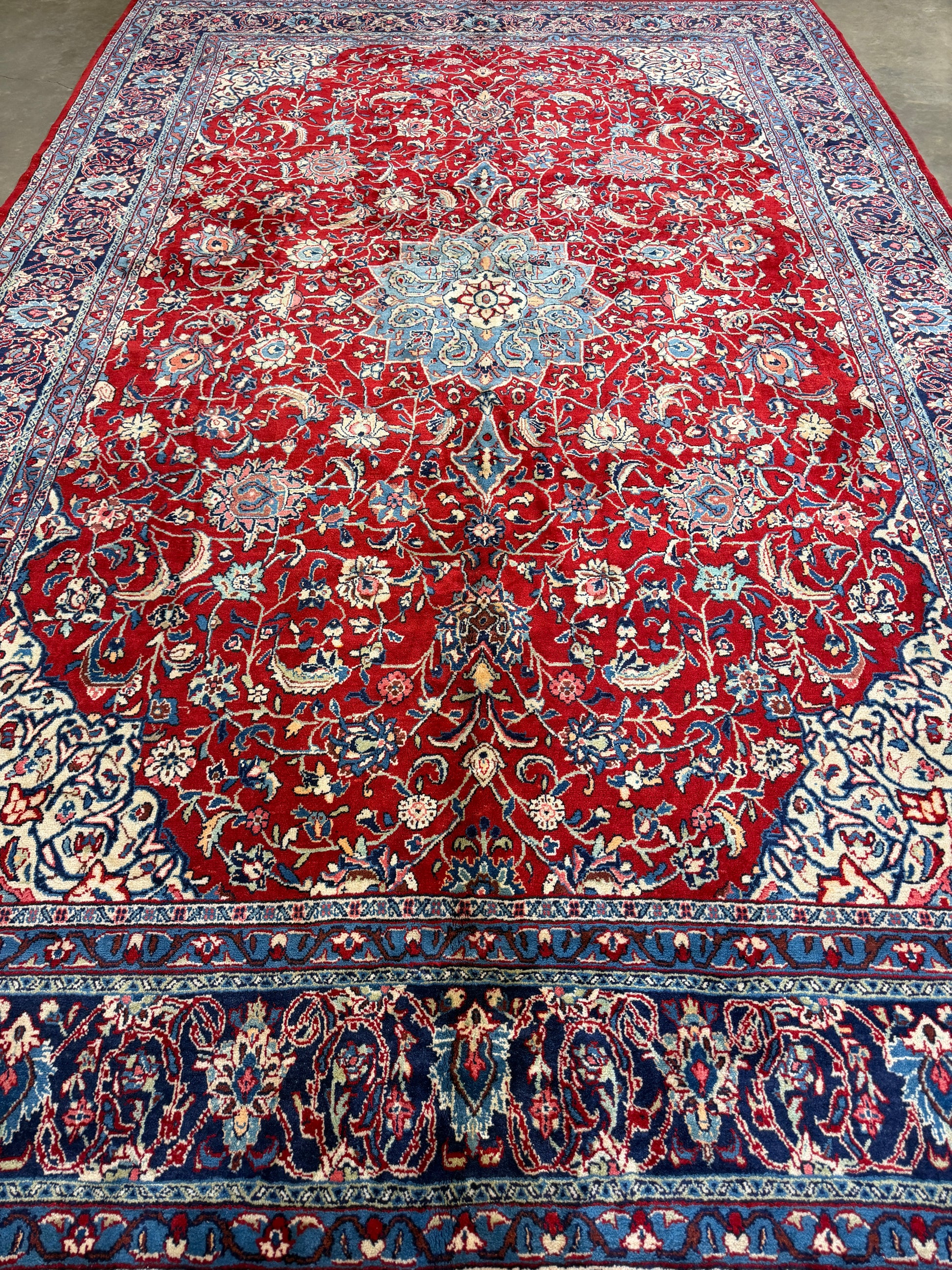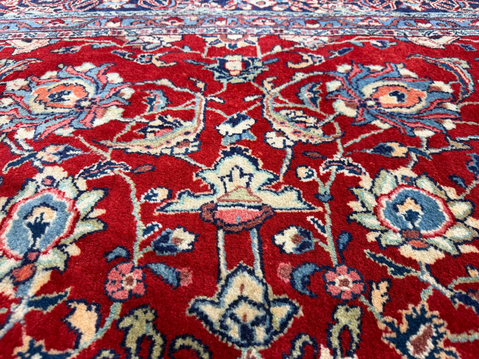 Introducing a masterpiece of luxury and artisanal craftsmanship - the 8'4"x12'8" Hand-Knotted Wool Sarouk Persian Rug. Handmade with the finest wool, this elegant red carpet is a statement of opulence and taste. Transform your space into a work of art with this exquisite piece.