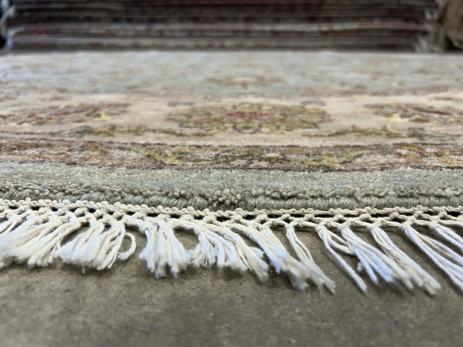 Classic Kashane floral design in a calming green palette Hand-knotted from high-quality wool for lasting craftsmanship Medium pile height for softness and everyday comfort Antistatic, noise-reducing, and allergy-friendly Eco-friendly, stain-resistant, and suitable for high-traffic areas Ideal for bedrooms, living rooms, dining rooms, and more Professional cleaning recommended for long-term care This one-of-a-kind rug from Rug Factory blends artisan detail with practical features, making it a stylish and versatile addition to any interior.