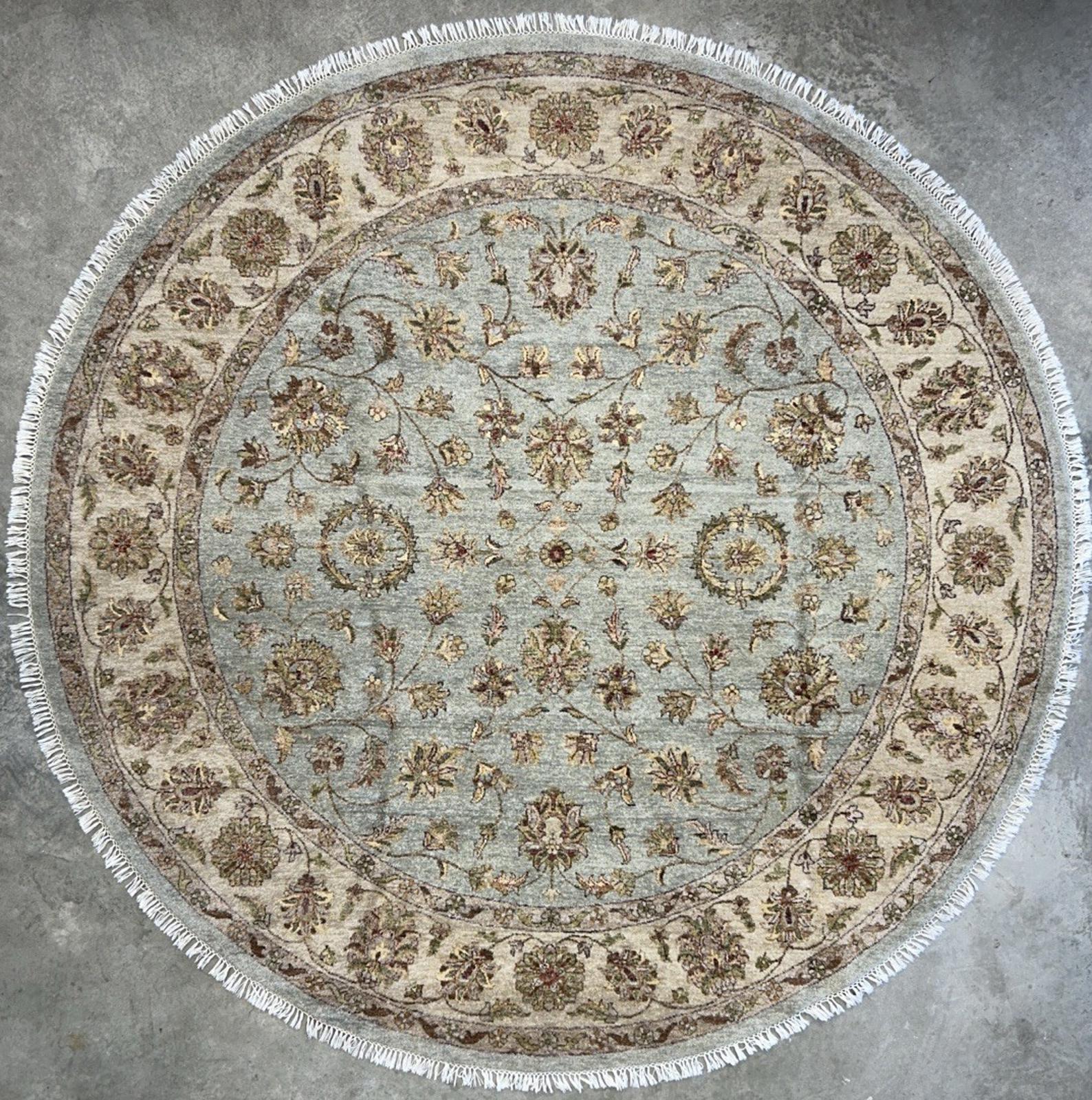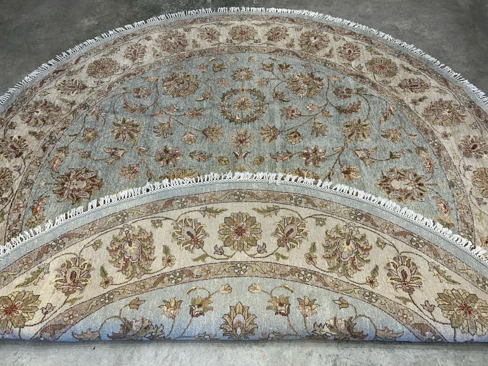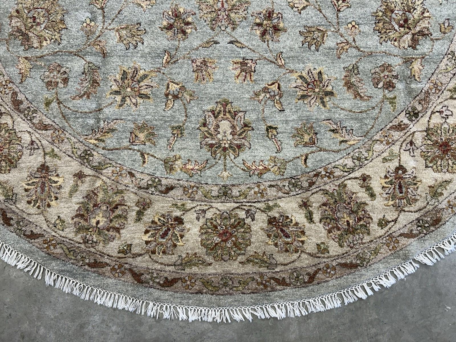 🏡 8' Round Hand-Knotted Kashane Wool Rug – Traditional Green Design