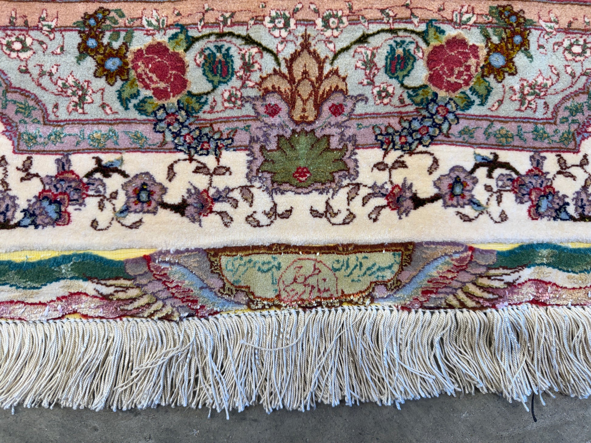 This 9’9” x 13’9” Very Fine Hand-Knotted Persian Tabriz 80 Raj Signed Area Rug exemplifies the masterful craftsmanship of Tabriz weavers. Featuring an elegant central medallion surrounded by intricate floral arabesques and detailed corner spandrels, its design is a harmonious blend of symmetry and artistry. The 80 Raj knot density showcases the precision of its weave, allowing for remarkably fine detailing and a soft, luxurious texture underfoot. Signed by the weaver, this rug represents a unique piece of Persian heritage, reflecting centuries of tradition in every fiber.