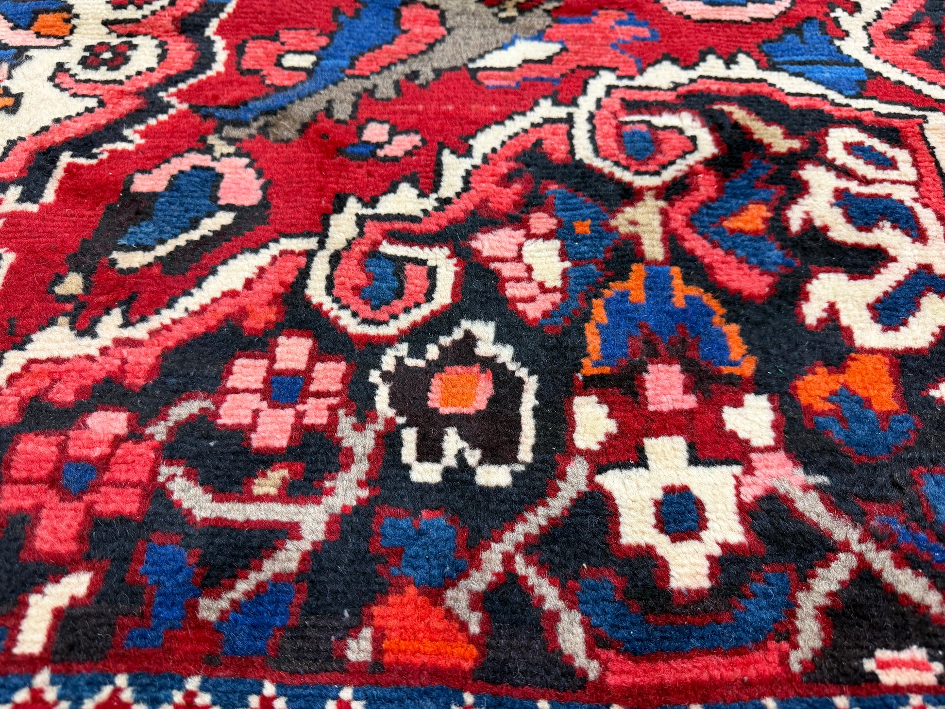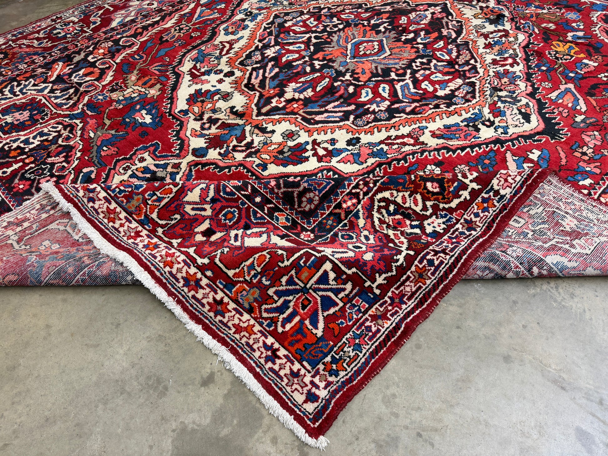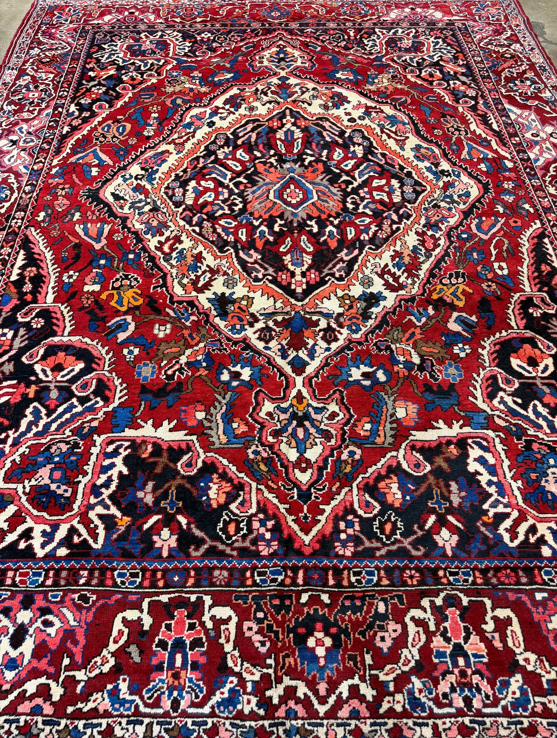 Elevate your space with our 10’1”x12’3” Vintage Hand-Knotted Wool Bakhtiari Persian Rug. Handmade with premium wool, this red carpet features intricate designs and a luxurious feel. Transform your home into a sophisticated and exclusive retreat with this stunning piece.